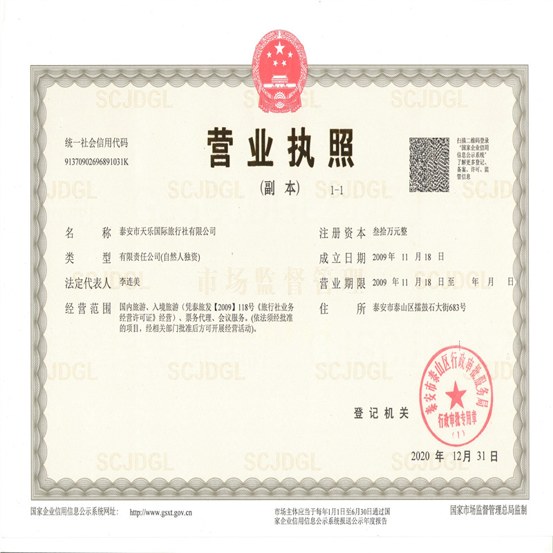 欢迎来到山东泰安市天乐国际旅行社有限公司!