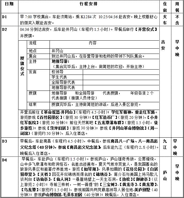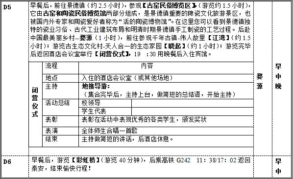 4、用餐:5早9正 5、全程辅导员指导