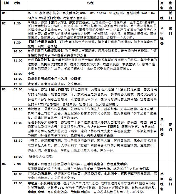 1、大交通:泰安/厦门 厦门/泰安高铁 当地空调旅游车 2、景点:景点首道大门票